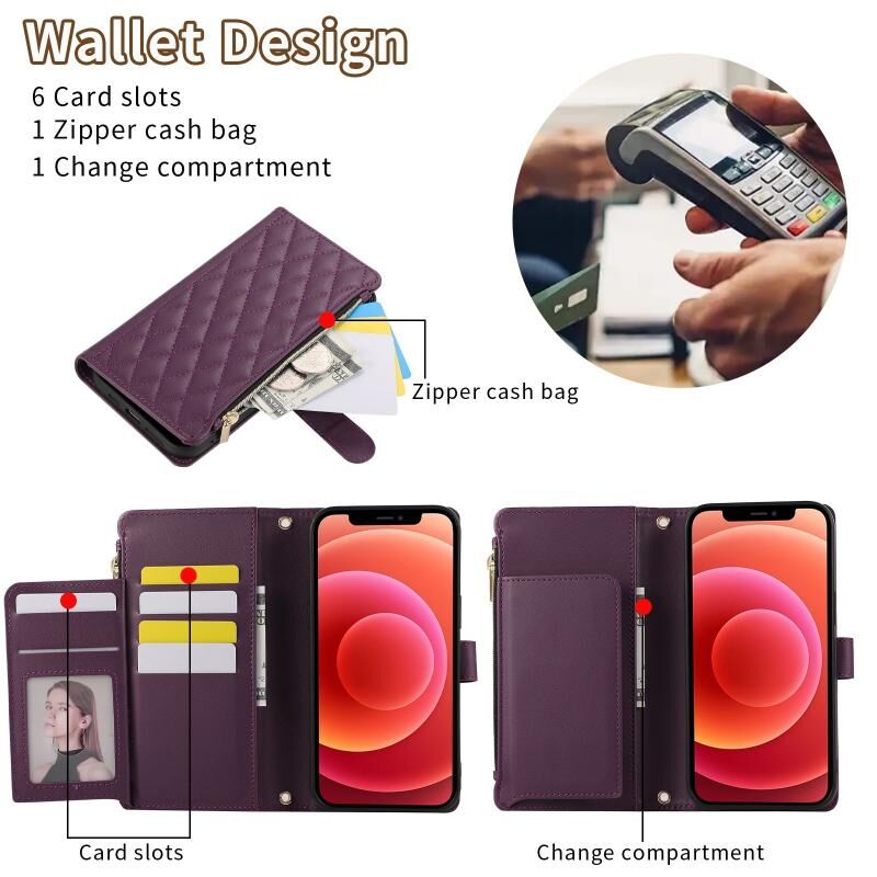 5. Multi-card Wallet Function: Multiple card slots and zipper wallet pockets, cash compartments can store your credit cards and daily small bills.