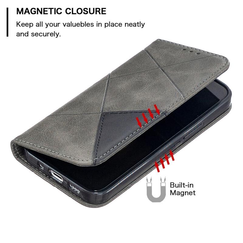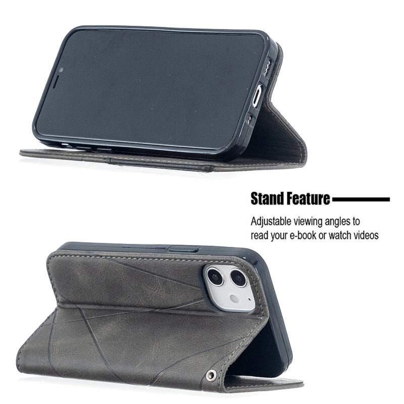 Θήκη για iPhone 12 mini με υφή ρόμβου, οριζόντια, μαγνητική, από δέρμα με βάση & θήκες για κάρτες (Κόκκινη)