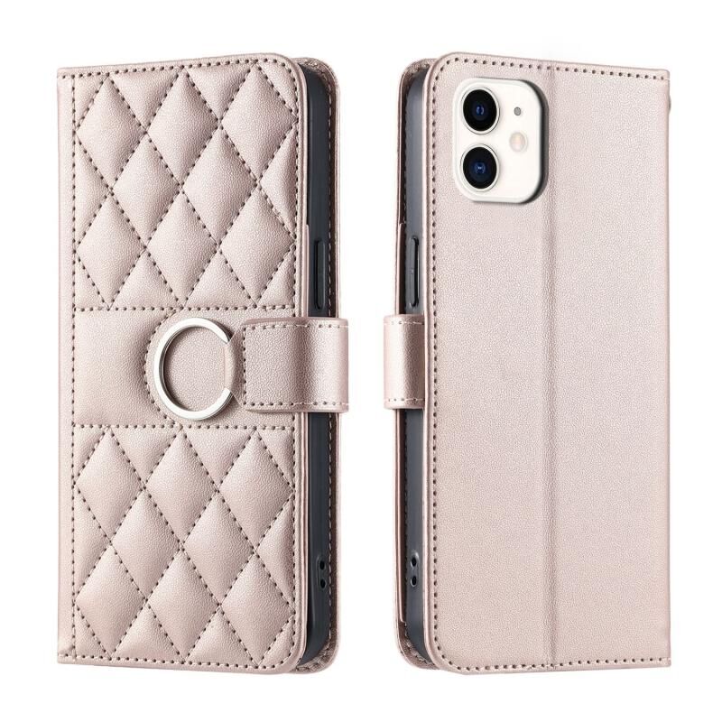 For iPhone 12 mini Ring Buckle Rhombic Leather Phone Case(Rose Gold)