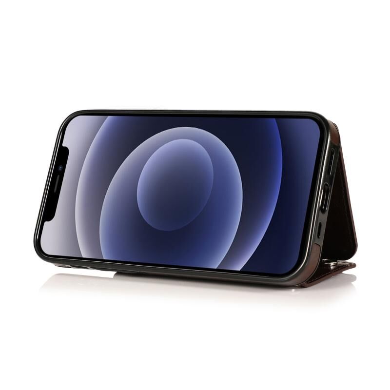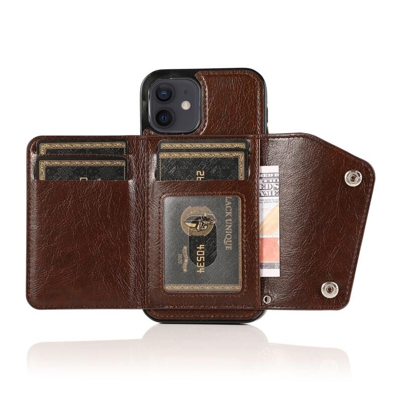 Θήκη για iPhone 12 mini ανθεκτική στις κρούσεις από PU + TPU δέρμα με θήκες για κάρτες & βάση στήριξης & κορνίζα φωτογραφιών & πορτοφόλι & κορδόνι (Μαύρο)