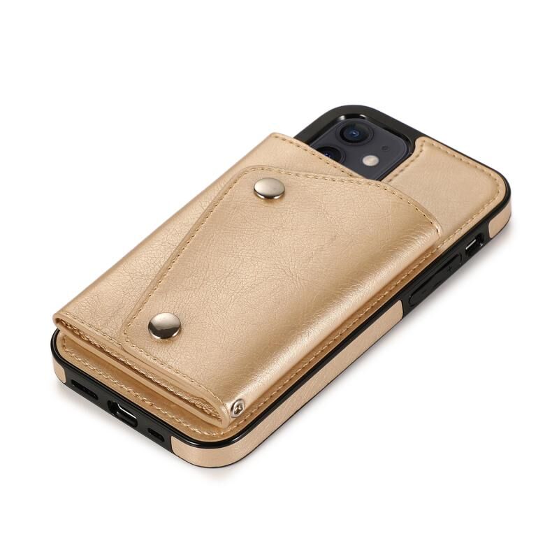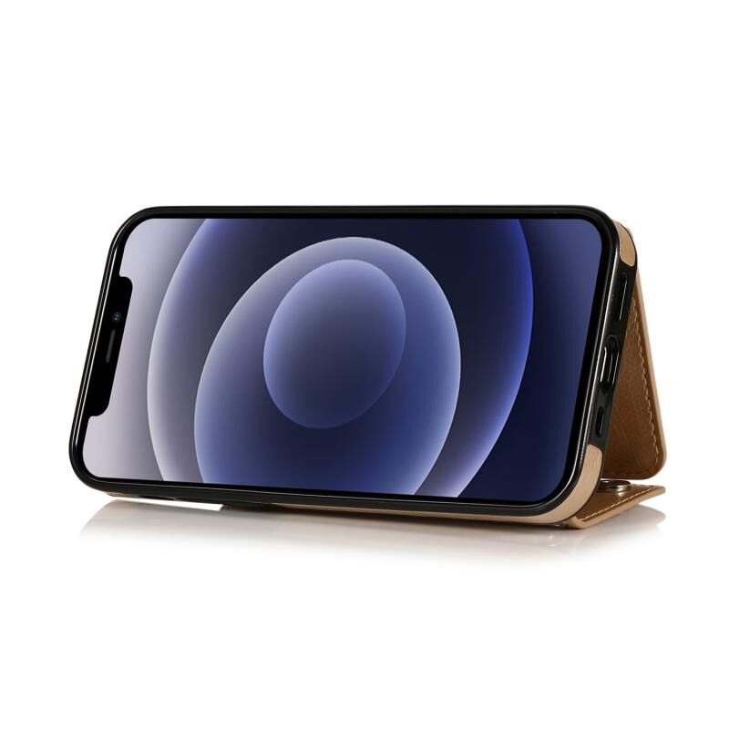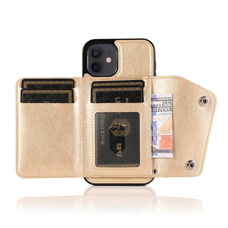 Θήκη για iPhone 12 mini ανθεκτική στις κρούσεις από PU + TPU δέρμα με θήκες για κάρτες & βάση στήριξης & κορνίζα φωτογραφιών & πορτοφόλι & κορδόνι (Μαύρο)