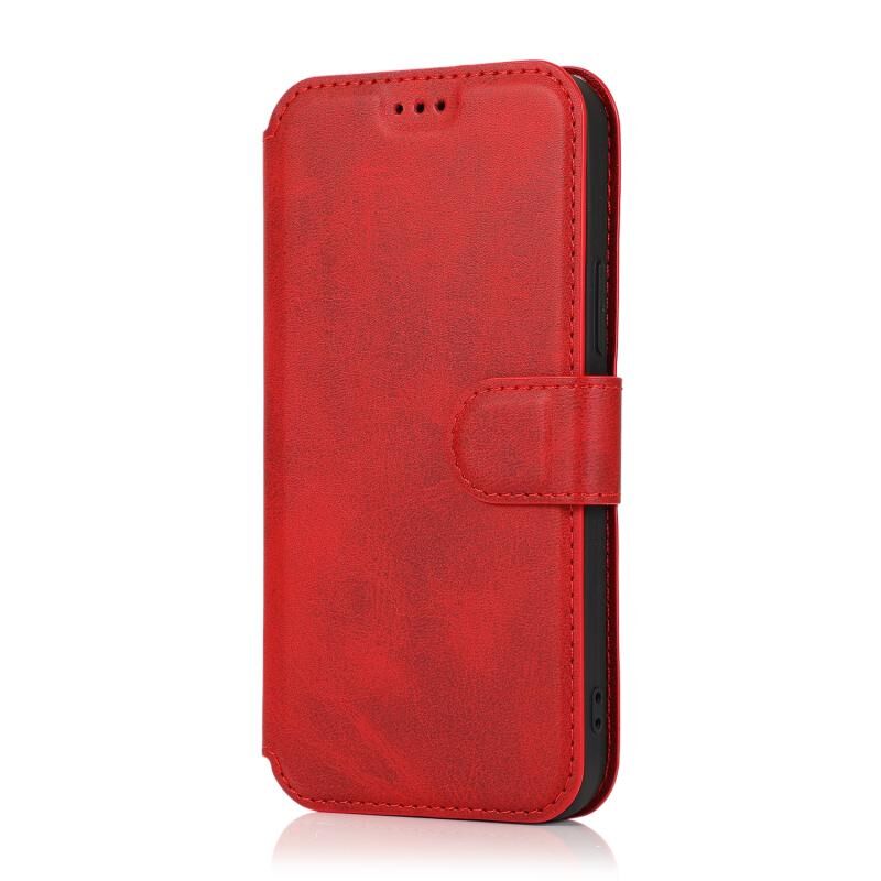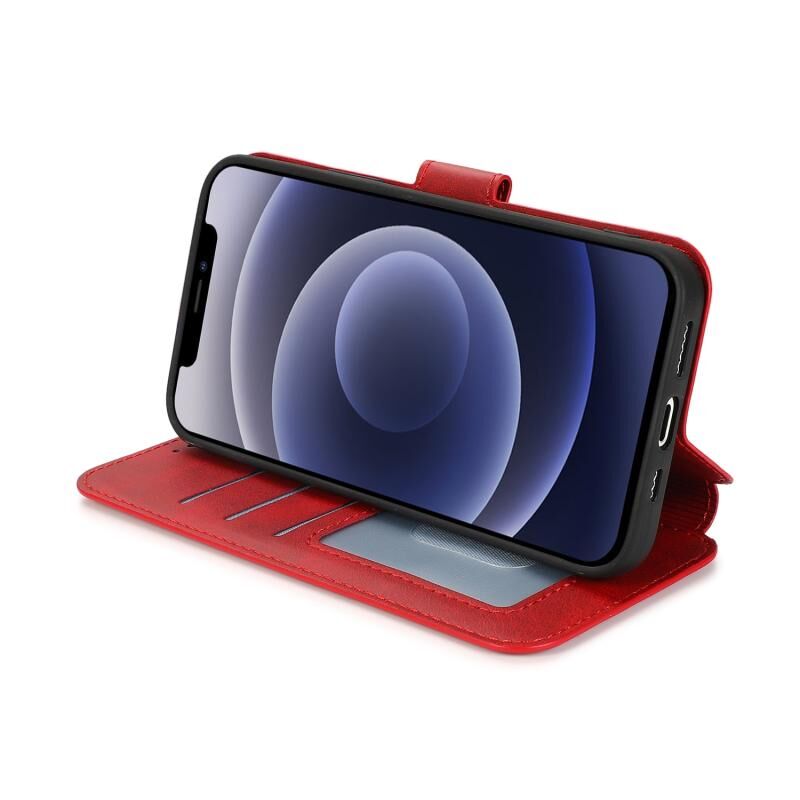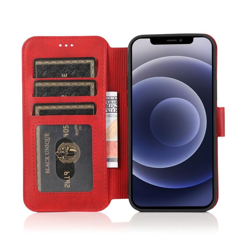 Θήκη για iPhone 12 mini ανθεκτική στις κρούσεις από PU + TPU δέρμα με θήκες για κάρτες & βάση στήριξης & κορνίζα φωτογραφιών & πορτοφόλι (Κόκκινο)