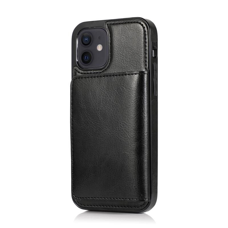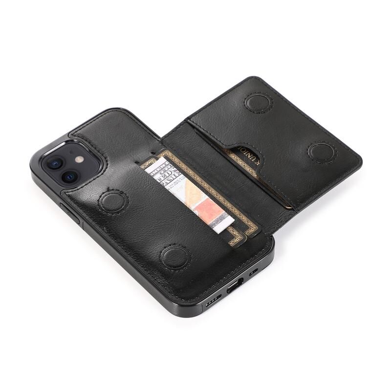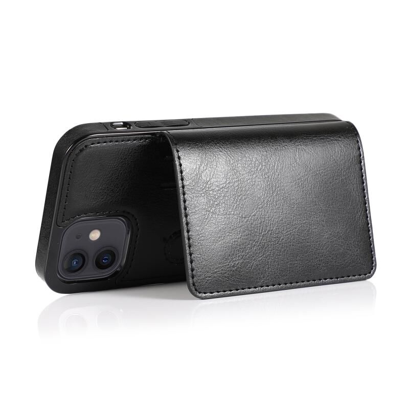 Θήκη προστασίας για iPhone 12 mini αντικραδασμική από PU + TPU με θήκες για κάρτες & βάση στήριξης (Μαύρο)