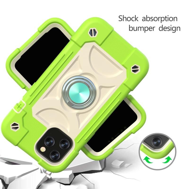 For iPhone 12 mini Shockproof Silicone + PC Protective Case with Dual-Ring Holder (Guava)