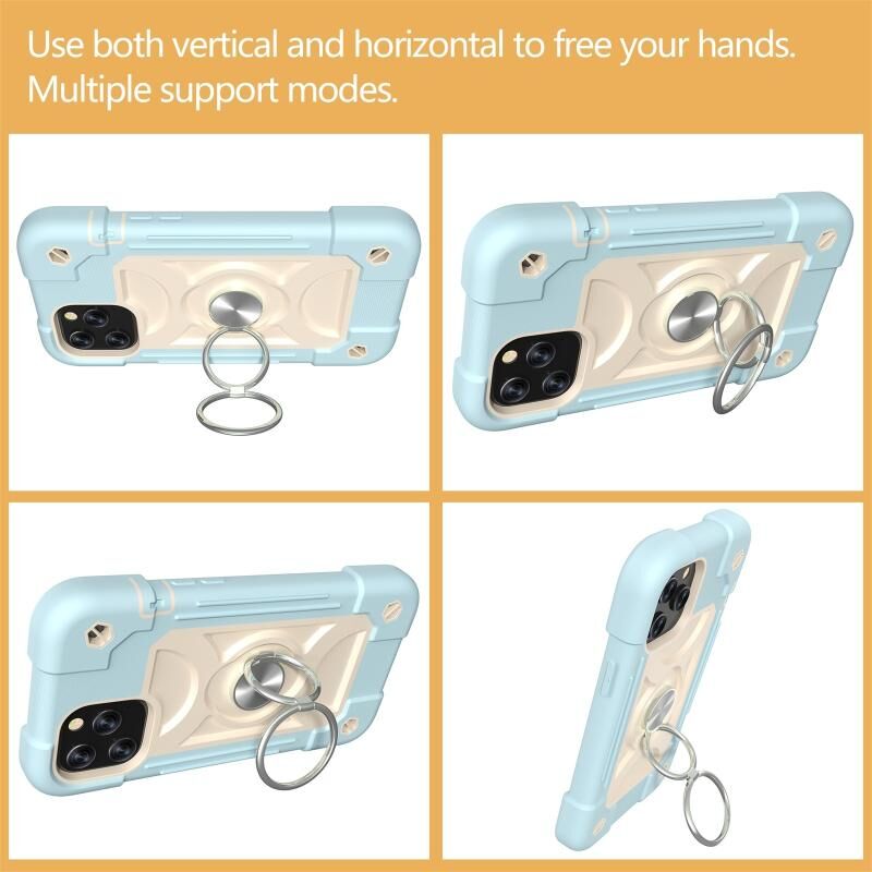 For iPhone 12 mini Shockproof Silicone + PC Protective Case with Dual-Ring Holder (Ice Blue)