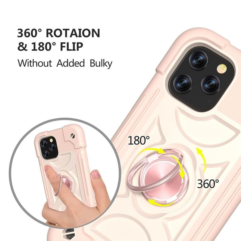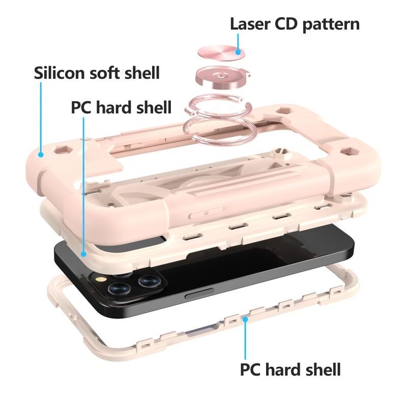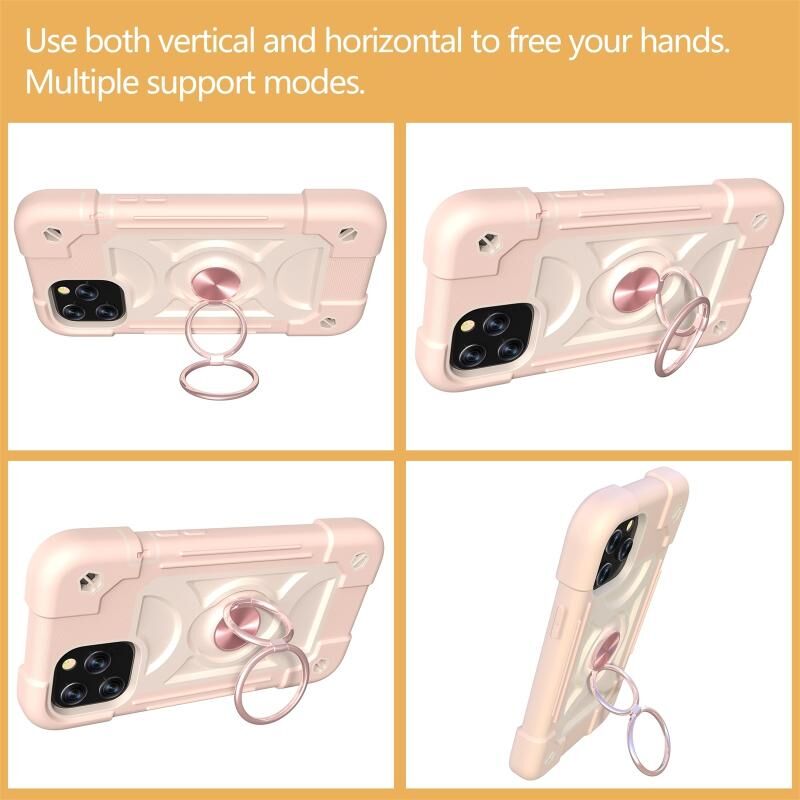 For iPhone 12 mini Shockproof Silicone + PC Protective Case with Dual-Ring Holder (Rose Gold)