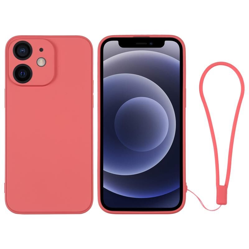 Θήκη σιλικόνης για iPhone 12 mini με λουρί καρπού (πορτοκαλί-κόκκινο)