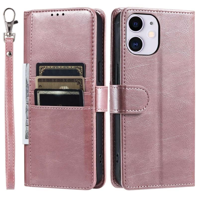For iPhone 12 mini Simple 6-Card Wallet Leather Phone Case(Rose Gold)