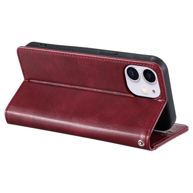 For iPhone 12 mini Simple 6-Card Wallet Leather Phone Case(Wine Red)