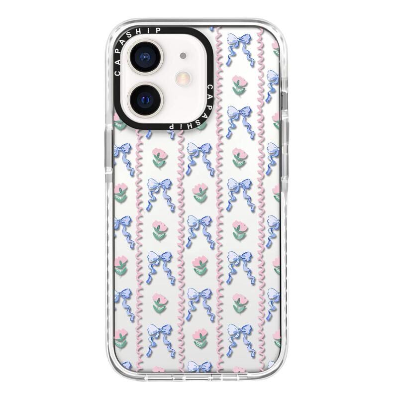 For iPhone 12 mini Simple Illustration Pattern Full Coverage Phone Case(Bowknot Flowers)