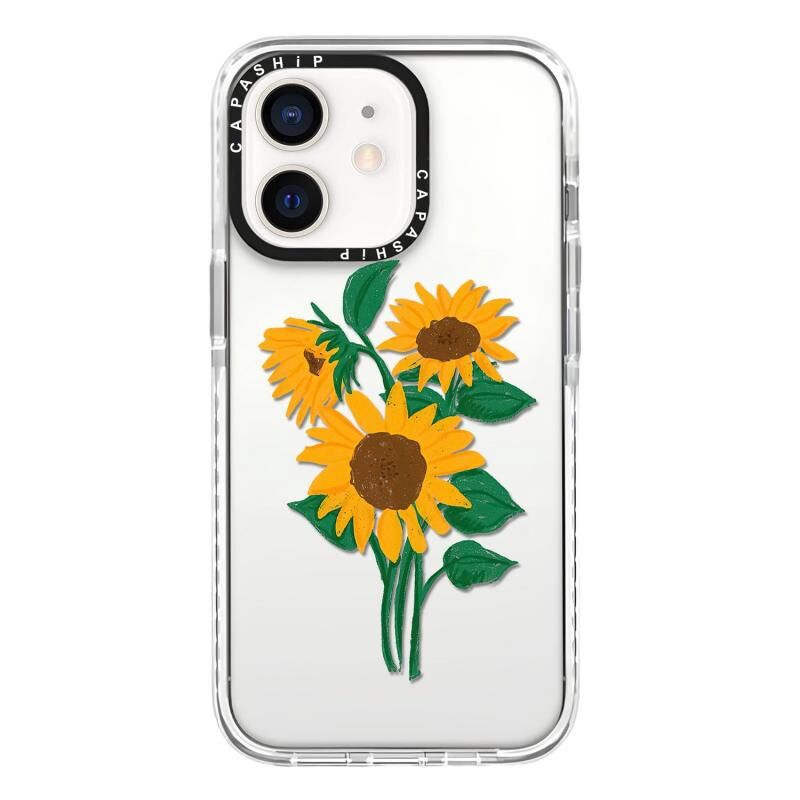 Θήκη τηλεφώνου πλήρους κάλυψης για iPhone 12 mini με απλό εικονογραφημένο σχέδιο (Ηλίανθοι A)