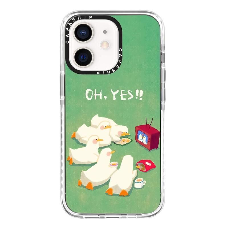 For iPhone 12 mini Simple Illustration Pattern Full Coverage Phone Case(Watch TV Duck)