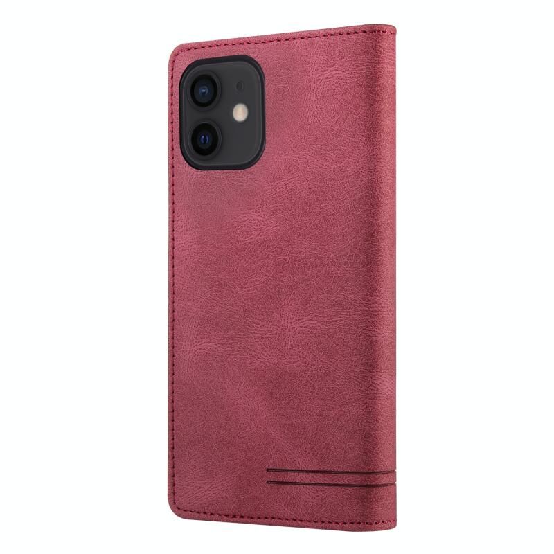 For iPhone 12 mini Skin Feel Anti-theft Brush Horizontal Flip Leather Case with Holder & Card Slots & Wallet (Wine Red)