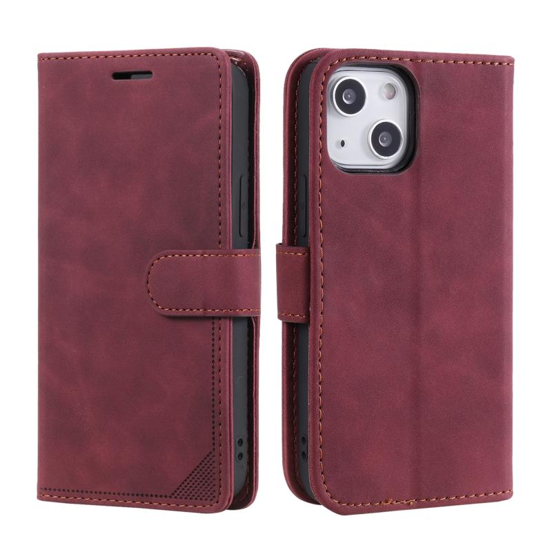 For iPhone 12 mini Skin Feel Anti-theft Brush Horizontal Flip Leather Phone Case (Red)