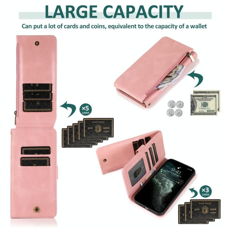 For iPhone 12 mini Skin-feel Crazy Horse Texture Zipper Wallet Bag Horizontal Flip Leather Case with Holder & Card Slots & Wallet & Lanyard (Rose Gold)
