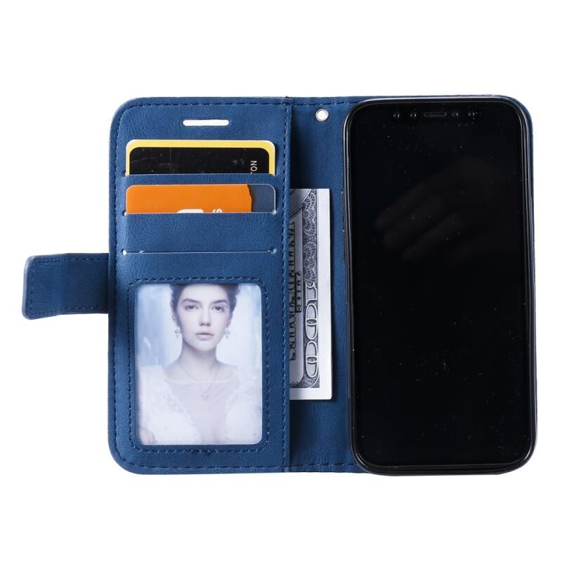 For iPhone 12 mini Skin Feel Splicing Horizontal Flip Leather Case with Holder & Card Slots & Wallet & Photo Frame(Blue)