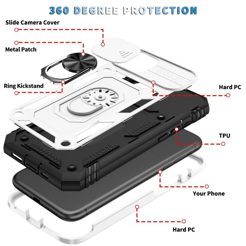 Θήκη προστασίας TPU + PC για iPhone 12 mini με σχεδιασμό συρόμενης κάμερας, περιστρεφόμενη βάση 360 μοιρών & υποδοχή κάρτας (Λευκό+Μαύρο)