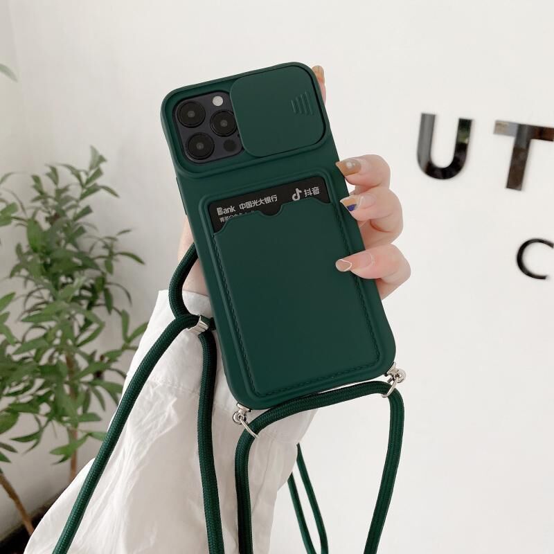 Θήκη προστασίας TPU με σχεδιασμό συρόμενου καλύμματος κάμερας και θήκη για κάρτες & λουρί λαιμού για iPhone 12 mini (Κόκκινο)