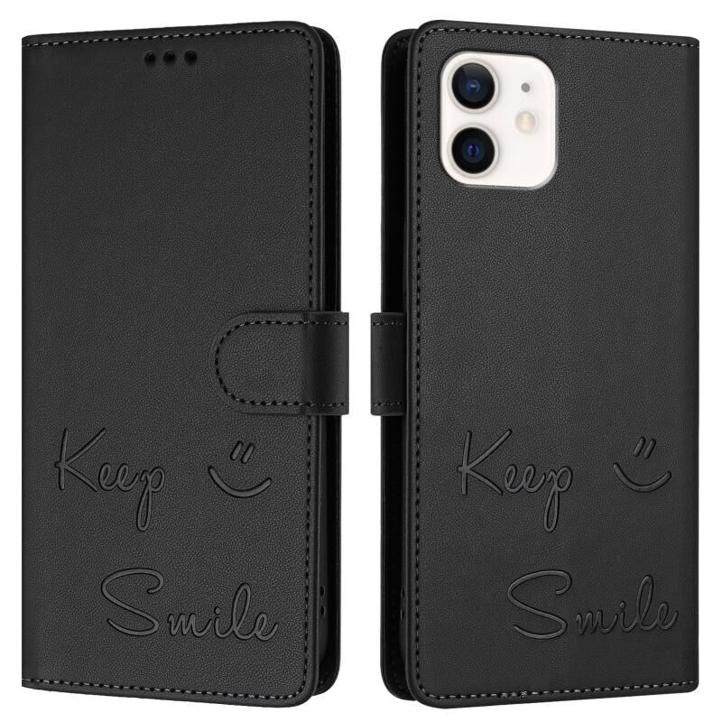 Θήκη τηλεφώνου δερμάτινη με ανάγλυφο χαμόγελο και προστασία RFID για iPhone 12 mini (Ροζ)