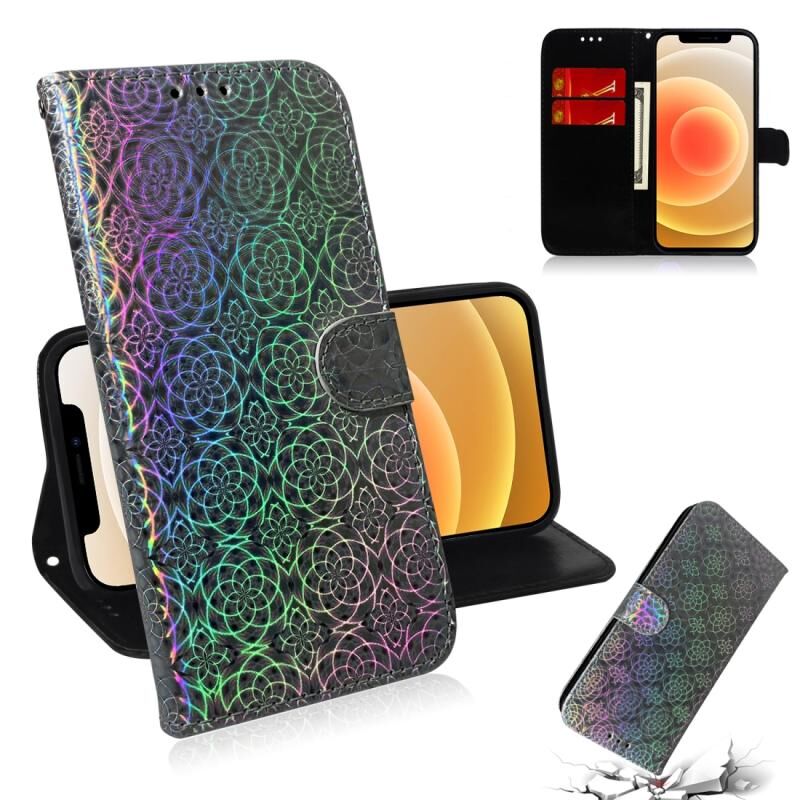 Θήκη για iPhone 12 mini, μονόχρωμη, πολύχρωμη, με μαγνητικό κούμπωμα, οριζόντια, από δερματίνη PU, με βάση στήριξης & θήκες για κάρτες & πορτοφόλι & κορδόνι (Μαύρο)