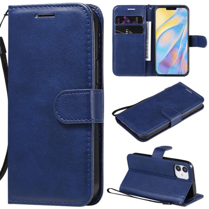 Θήκη για iPhone 12 mini, μονόχρωμη, οριζόντια, ανακλινόμενη, προστατευτική από δέρμα με βάση & θήκες για κάρτες & πορτοφόλι & κορνίζα φωτογραφιών & κορδόνι (Καφέ)