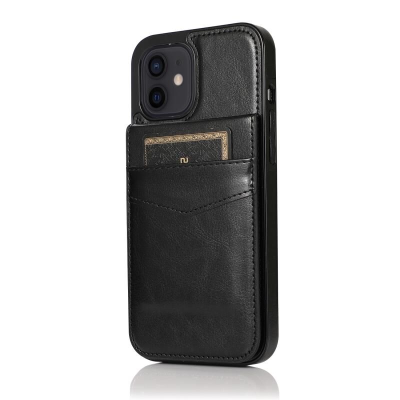 For iPhone 12 mini Solid Color PC + TPU Protective Case with Holder & Card Slots (Black)