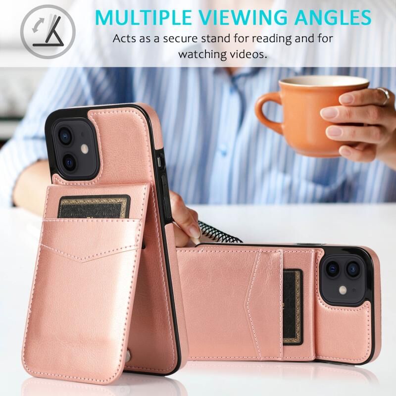 For iPhone 12 mini Solid Color PC + TPU Protective Case with Holder & Card Slots (Rose Gold)