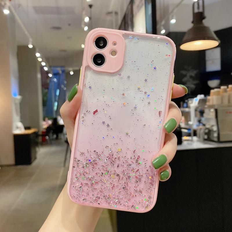 For iPhone 12 mini Starry Gradient Glitter Powder TPU Phone Case(Pink)