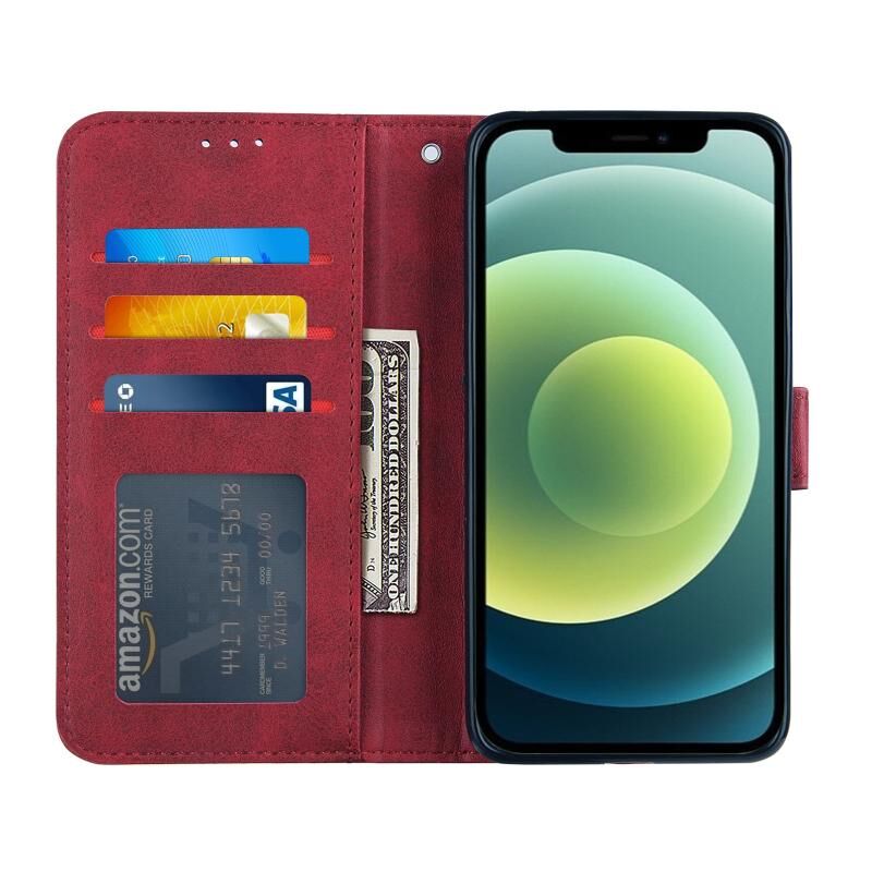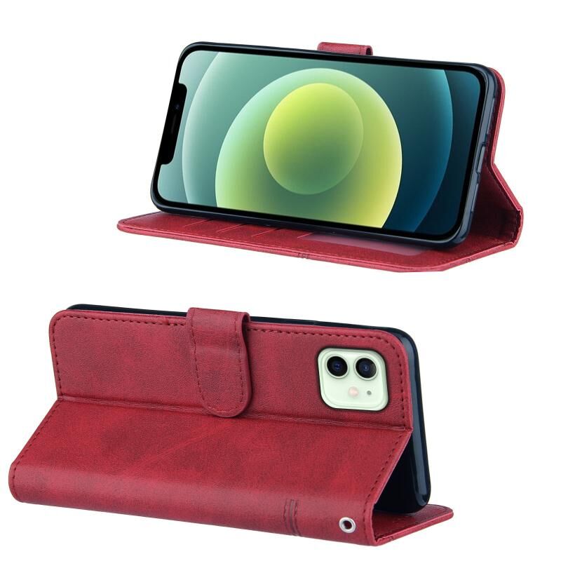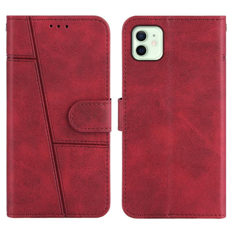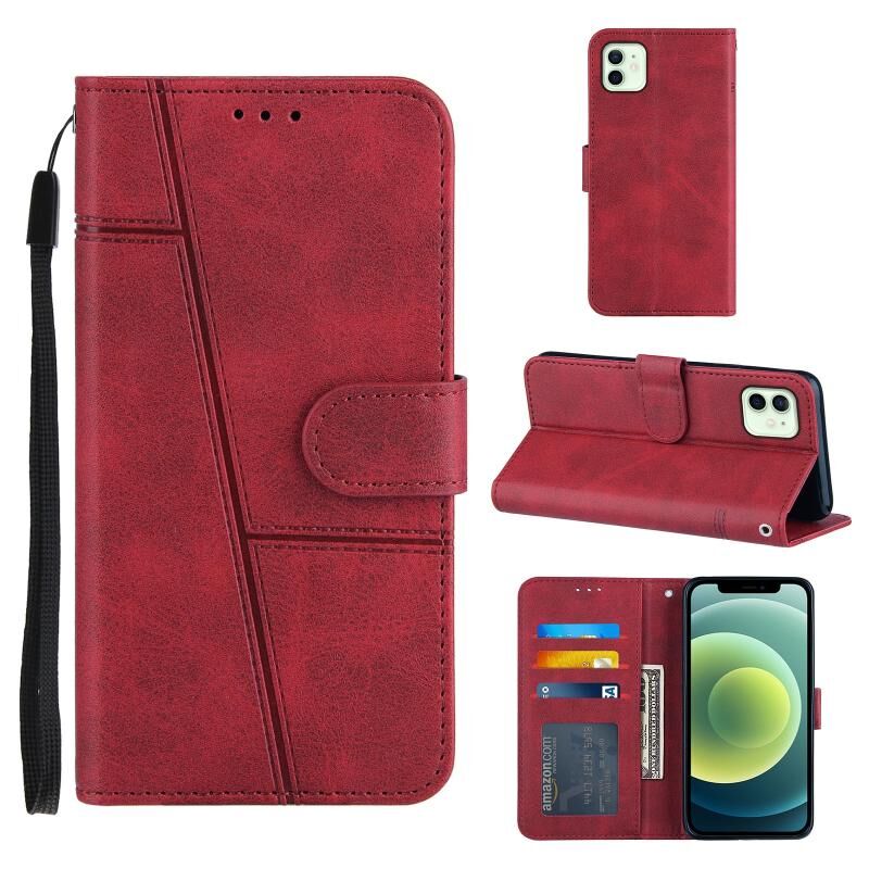Θήκη για iPhone 12 mini με ραφές, υφή δέρματος μοσχαριού, αγκράφα, οριζόντια αναδιπλούμενη από δέρμα με βάση & υποδοχές καρτών & πορτοφόλι & κορδόνι (Μαύρο)