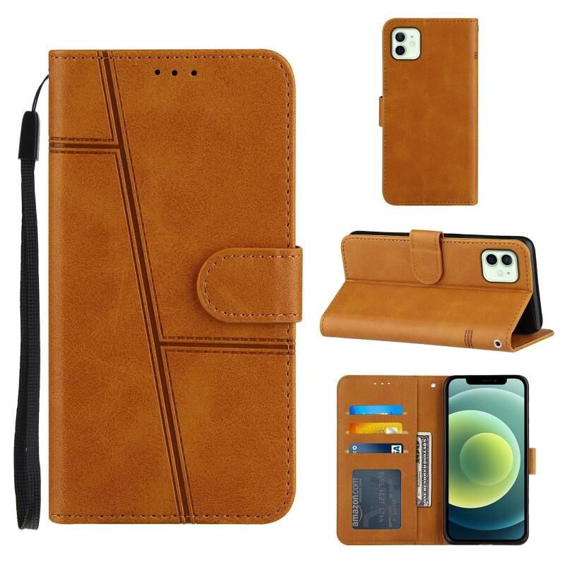 Θήκη για iPhone 12 mini με ραφές, υφή δέρματος μοσχαριού, αγκράφα, οριζόντια αναδιπλούμενη από δέρμα με βάση & υποδοχές καρτών & πορτοφόλι & κορδόνι (Μαύρο)