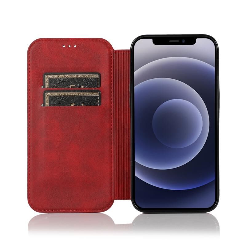 Θήκη για iPhone 12 mini με ισχυρό μαγνητικό κλείσιμο, από δέρμα PU + TPU με θήκες για κάρτες & βάση (Κόκκινο Ρόδι)