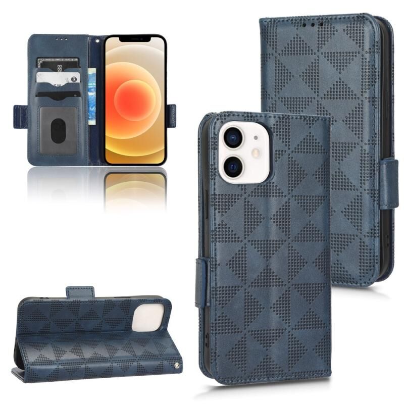 For iPhone 12 mini Symmetrical Triangle Leather Phone Case(Blue)