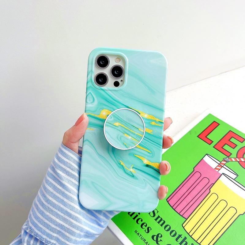 Θήκη για iPhone 12 mini από παχύτερο TPU με γυαλιστερό σχέδιο μαρμάρου και πτυσσόμενη βάση (Μαύρο)