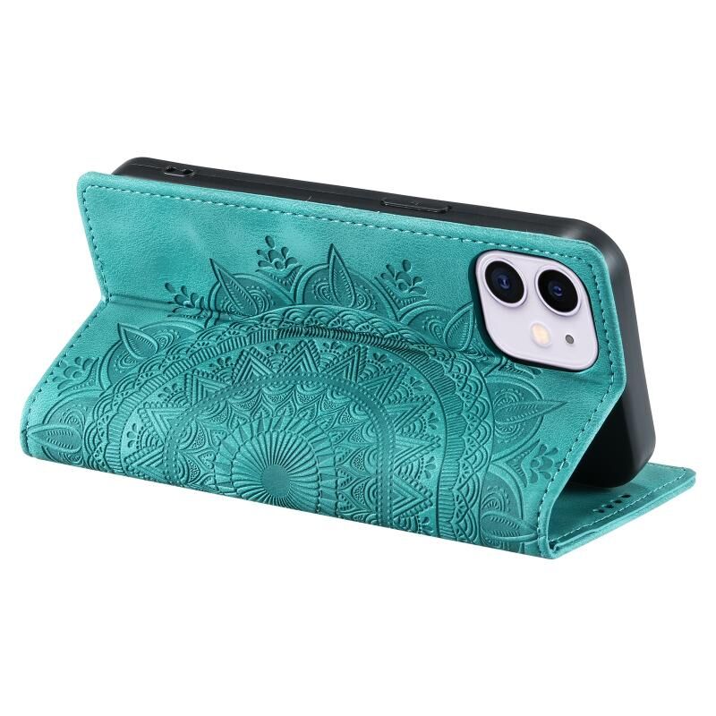 For iPhone 12 mini Totem Embossed Magnetic Leather Phone Case(Green)