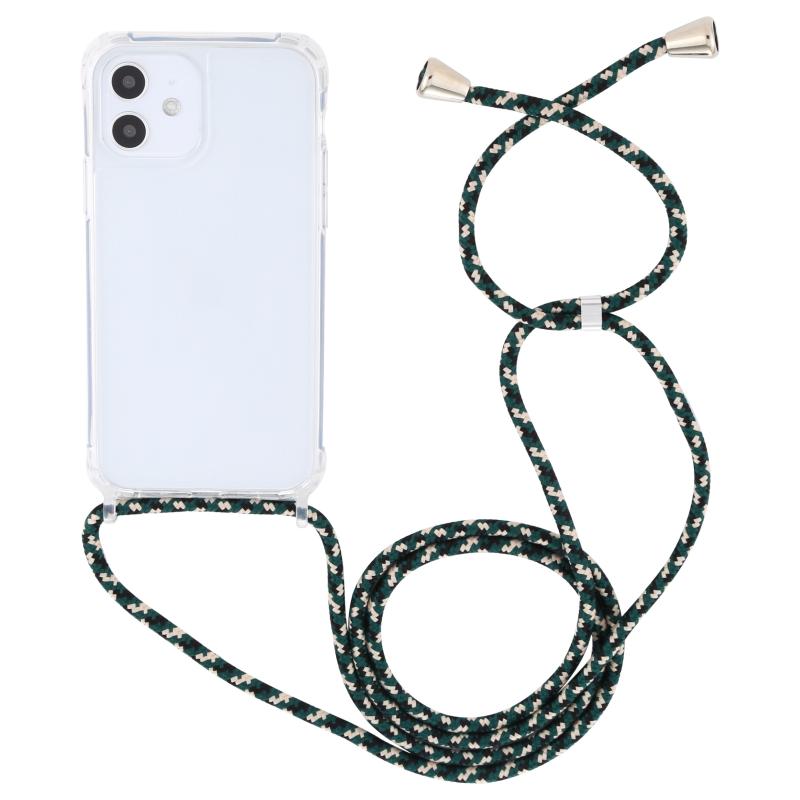 For iPhone 12 mini Transparent Acrylic Airbag Shockproof Phone Protective Case with Lanyard (Green Beige Black)