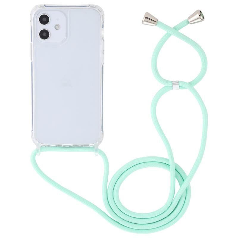Διαφανής Ακρυλική Θήκη Προστασίας για iPhone 12 mini με Αερόσακο, Αντικραδασμική με Λουρί (Πράσινο Λευκό Μπλε)