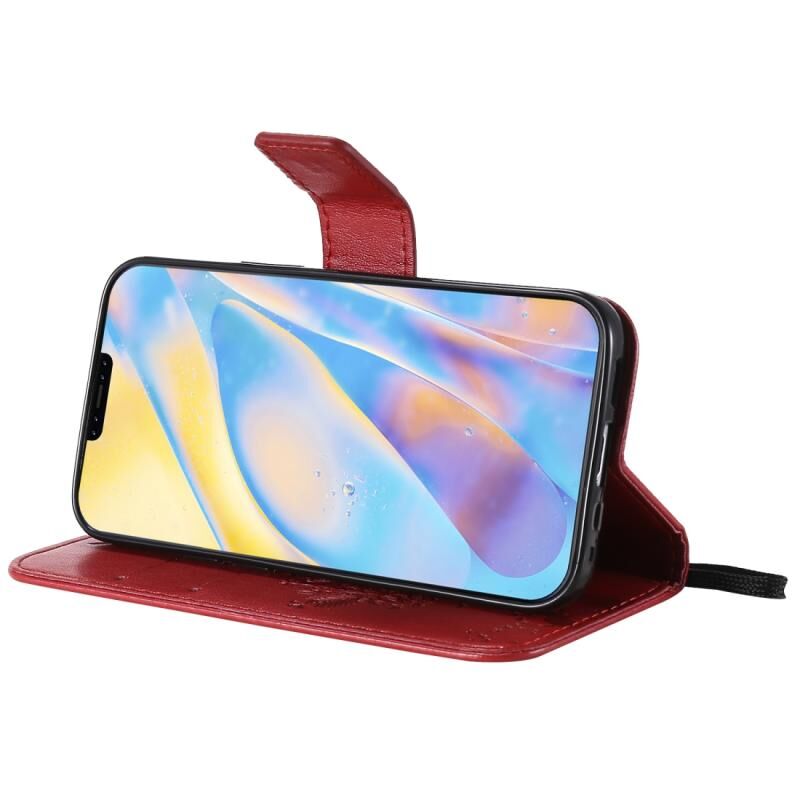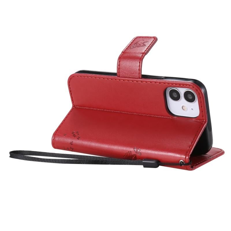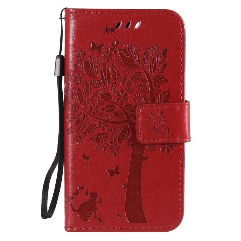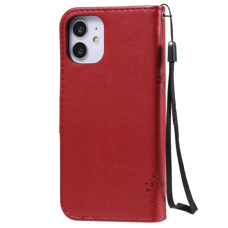 Θήκη για iPhone 12 mini με ανάγλυφο σχέδιο Δέντρου & Γάτας, οριζόντια, από δέρμα με βάση στήριξης & θήκες για κάρτες & πορτοφόλι & κορδόνι (Χρυσό Ροζ)