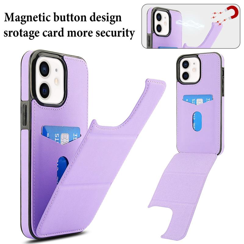 For iPhone 12 mini Tri-fold Holder Leather Phone Case with Card Slot(Light Purple)