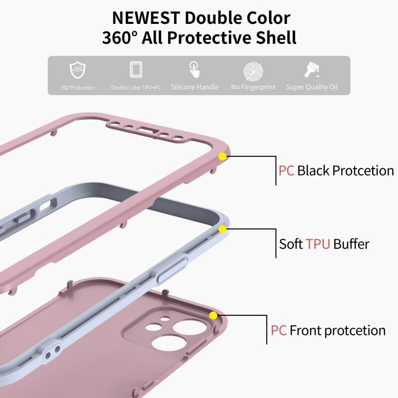 For iPhone 12 mini Two Color Full Protective 3-in-1 Phone Case(Pink)