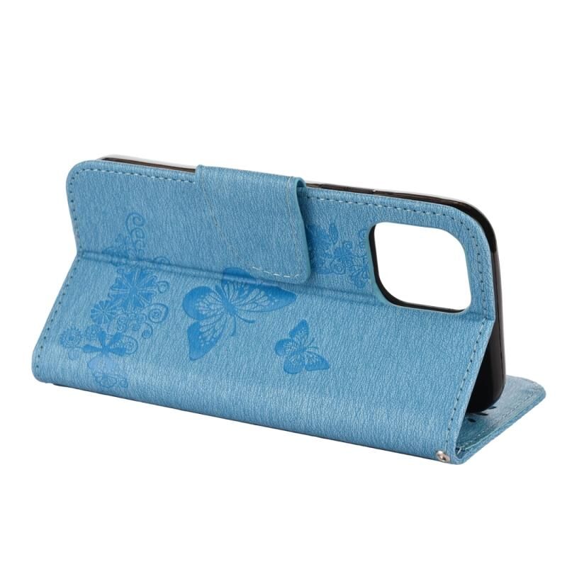 Θήκη για iPhone 12 mini Vintage με ανάγλυφο floral σχέδιο πεταλούδας, οριζόντια, από δέρμα με θήκη για κάρτες, στήριξη, πορτοφόλι και λουρί (Ροζ)