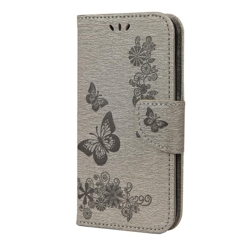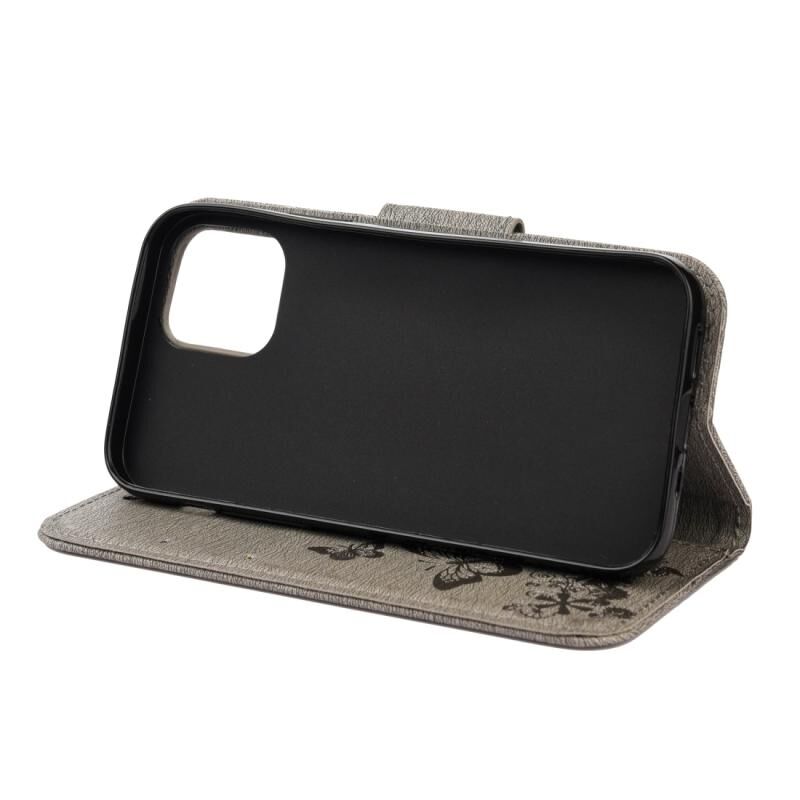 Θήκη για iPhone 12 mini Vintage με ανάγλυφο floral σχέδιο πεταλούδας, οριζόντια, από δέρμα με θήκη για κάρτες, στήριξη, πορτοφόλι και λουρί (Ροζ)