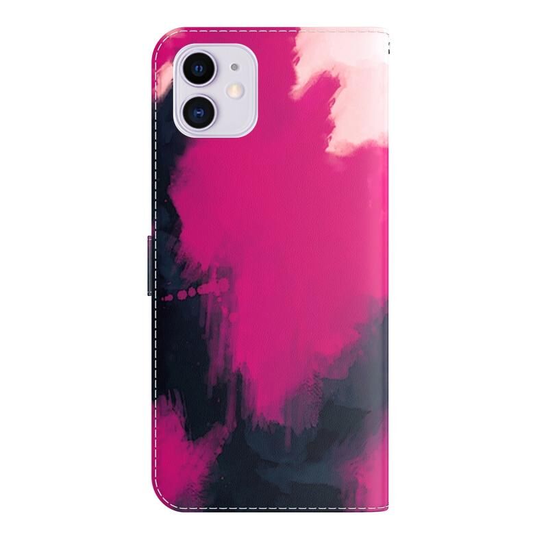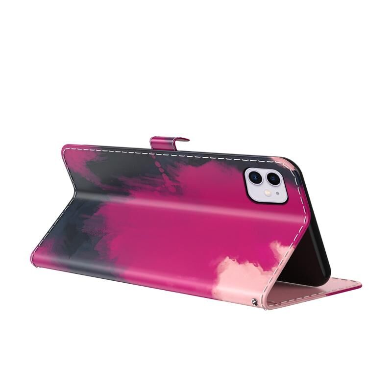 Θήκη δέρματος οριζόντιας αναδίπλωσης με σχέδιο ακουαρέλας για iPhone 12 mini με βάση & υποδοχή κάρτας & πορτοφόλι (Χρώμα Μούρο)