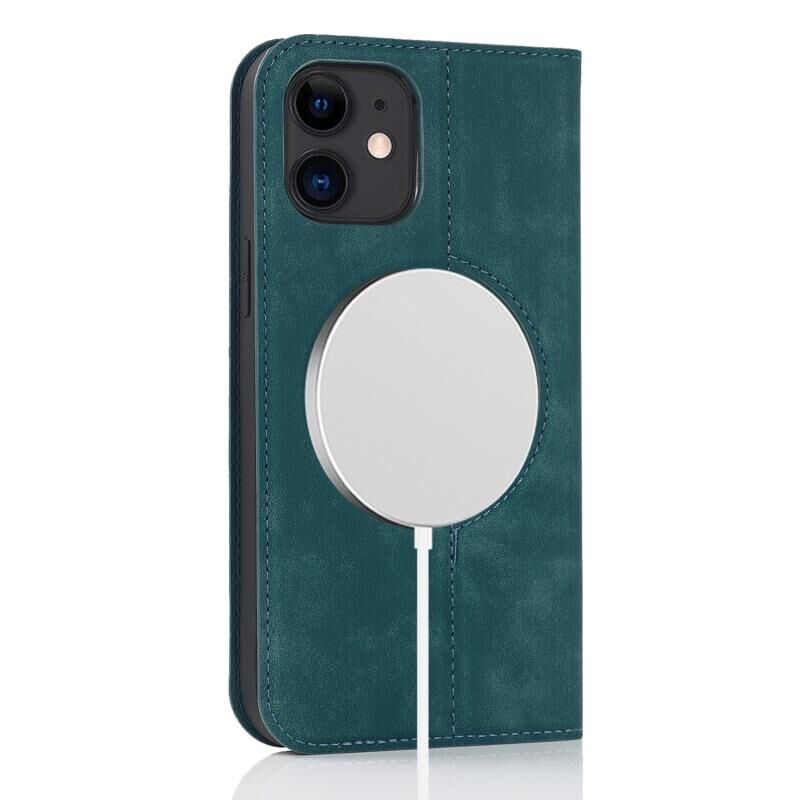 For iPhone 12 mini Wireless Charging Magsafe Leather Phone Case (Blue)