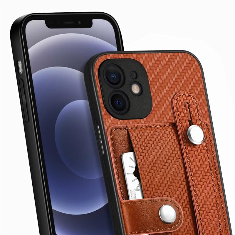 For iPhone 12 mini Wristband Kickstand Card Wallet Back Cover Phone Case with Tool Knife(Blue)