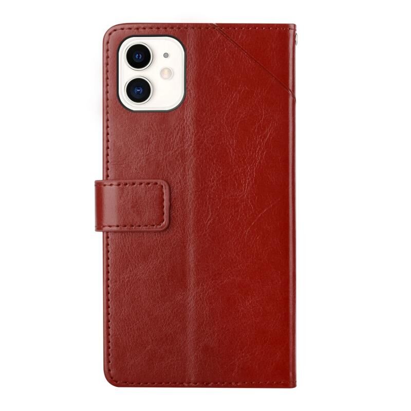 Θήκη τηλεφώνου από δέρμα με οριζόντιο άνοιγμα για iPhone 12 mini με ραφή Y, με βάση στήριξης & θήκες για κάρτες & πορτοφόλι & κορνίζα φωτογραφιών (Κόκκινο)