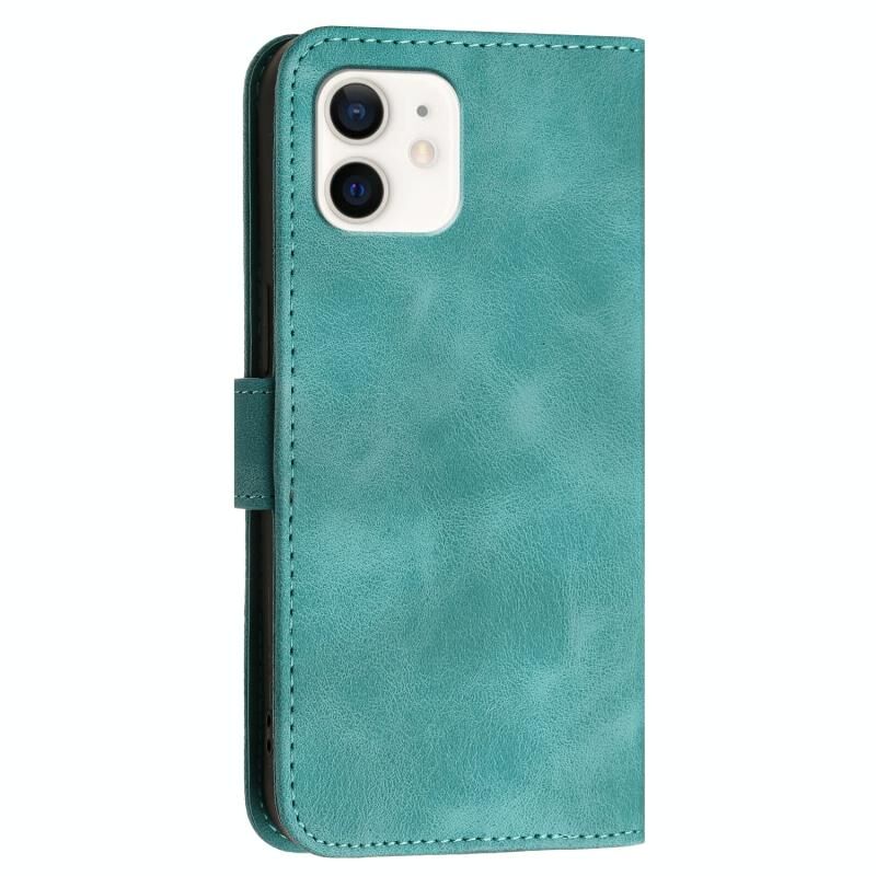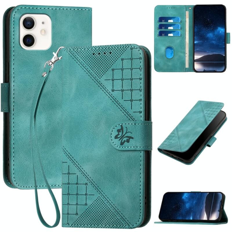 For iPhone 12 mini YX0080 Grid Butterfly Embossed Pattern Flip Leather Phone Case with Lanyard(Light Blue)