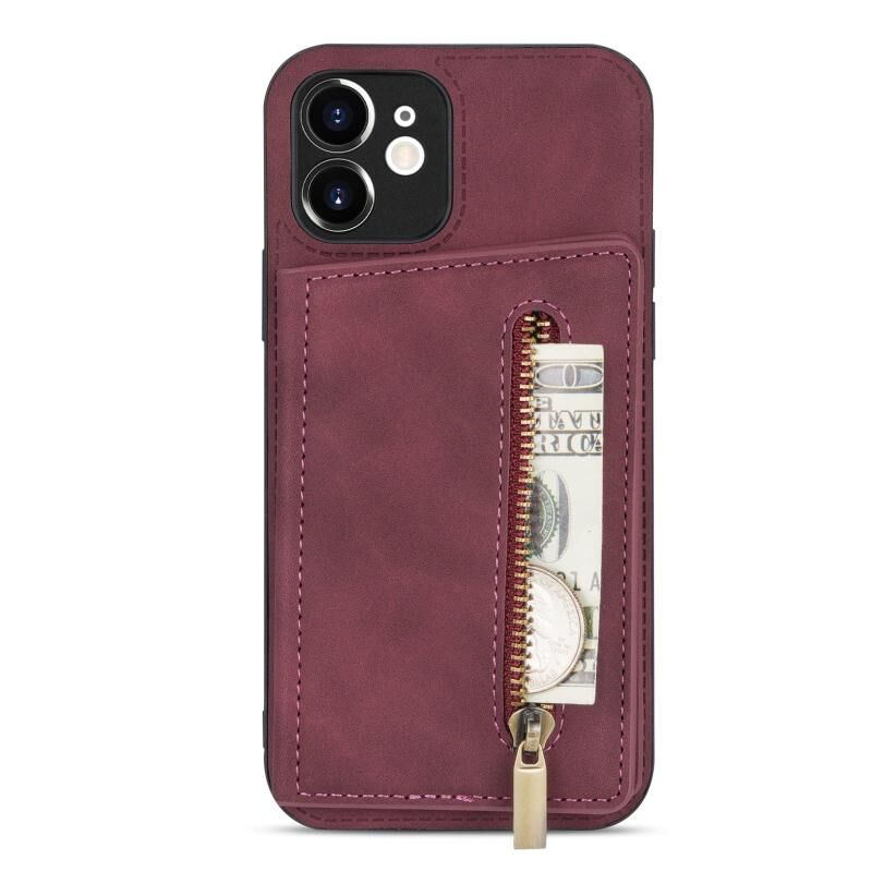 Θήκη κινητού τηλεφώνου με φερμουάρ και θήκη καρτών για iPhone 12 mini (Μαύρο)