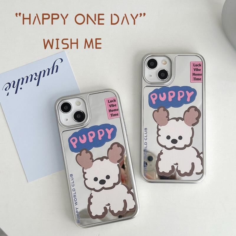 For iPhone 12 Mirror Puppy Pattern TPU + PC Phone Case(Teddy)