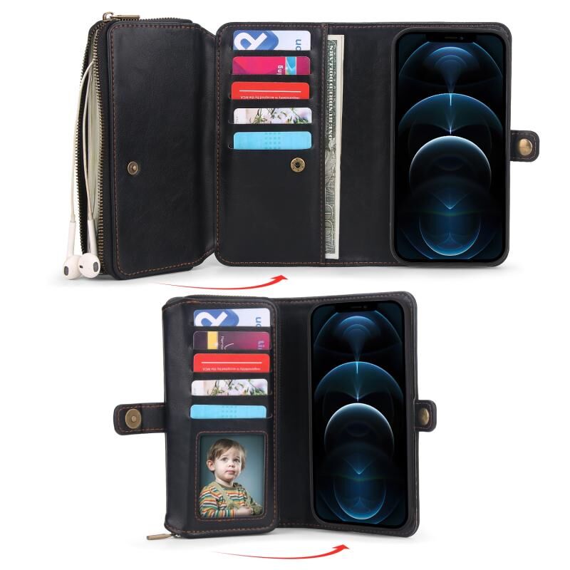 Θήκη τηλεφώνου από δέρμα με φερμουάρ, πολυλειτουργική για iPhone 12 (Μαύρο)