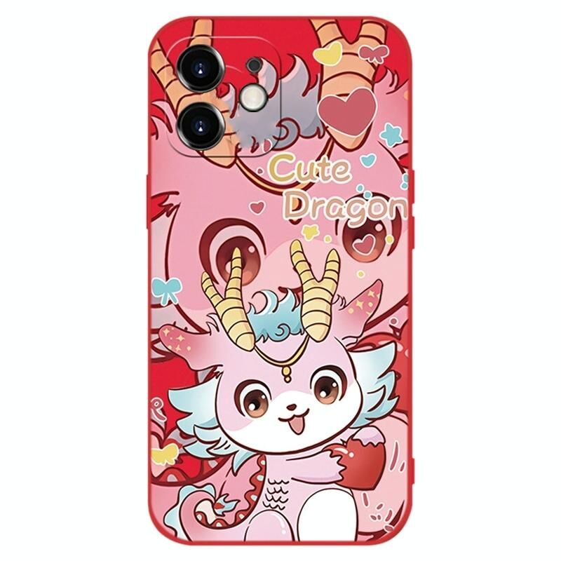 Θήκη τηλεφώνου για iPhone 12, Σιλικόνης, Αντικραδασμική, Κόκκινη για την Πρωτοχρονιά (Χαριτωμένος Ροζ Δράκος)